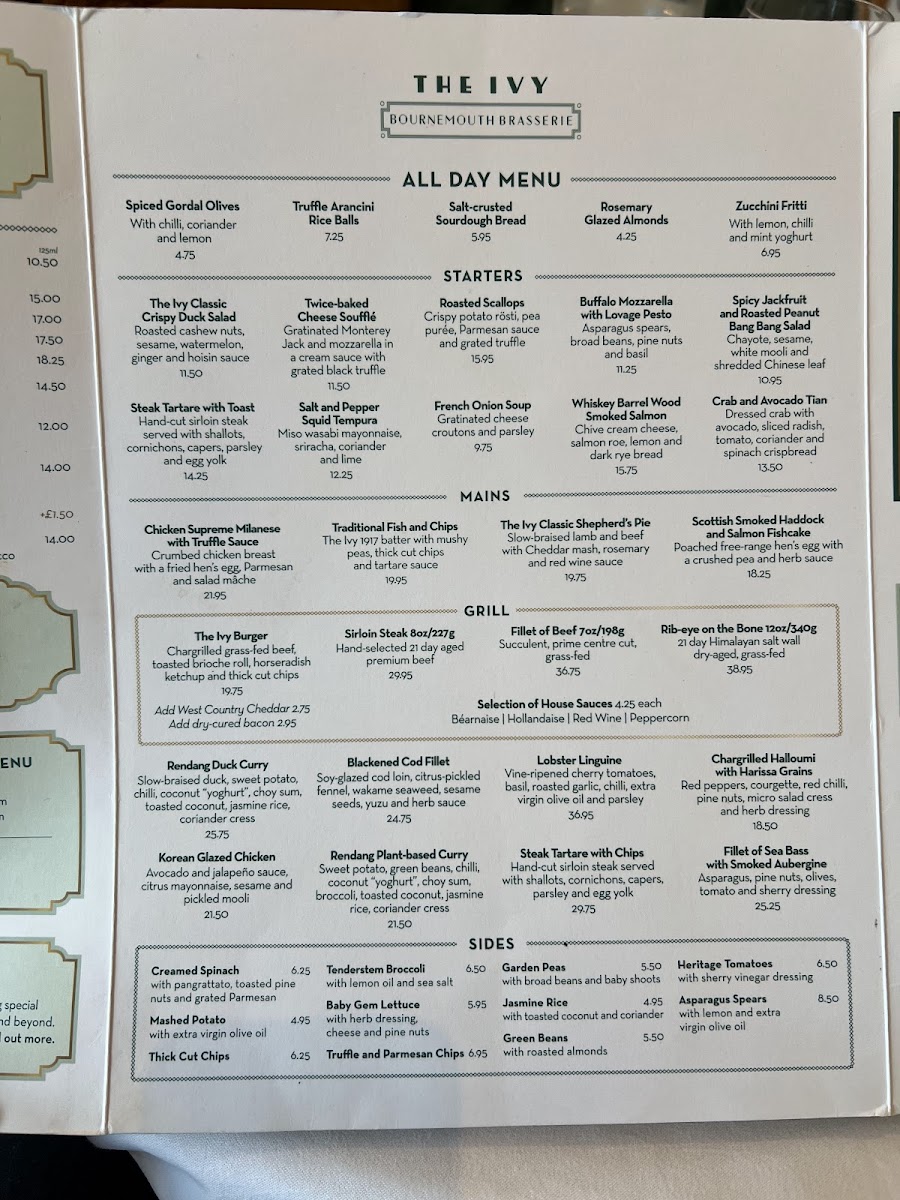 The Ivy Bournemouth Brasserie Menu